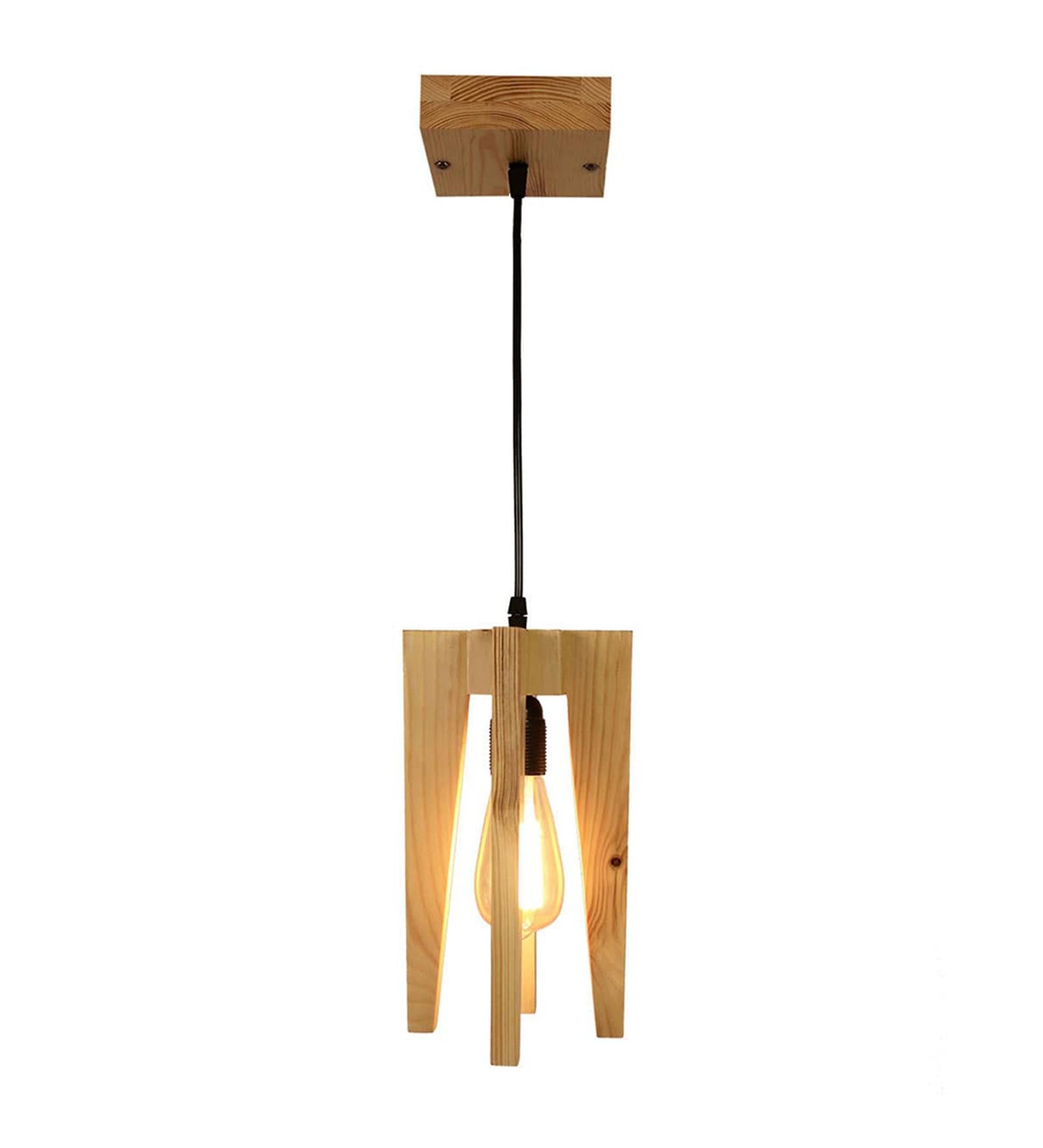 Light Brown Wooden Single Hanging Lamp