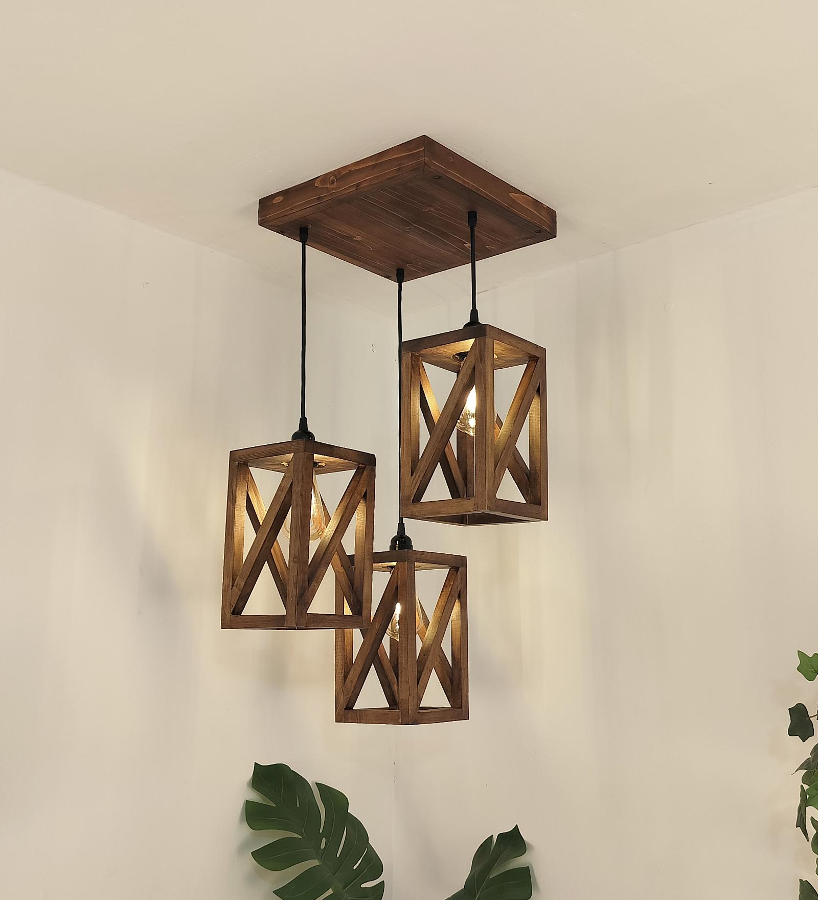 Elevate your interior with our Teach Brown Wooden Cluster hanging Lamp. The natural Brown Pine Wood finish and suspended Rectangular design create a stunning focal point for dining areas or living rooms.